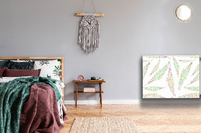 Dekoratív radiátorszőnyeg Akvarell levelek belsejében egy mágnes van, így egyszerűen a radiátorhoz rögzíthető. Látható, külső oldalán található a kiválasztott, korszerű nyomtatási módszerrel készült minta.