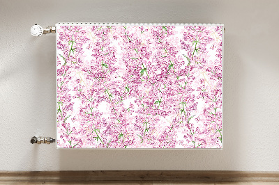 Dekoratív radiátorszőnyeg Lila virágok belsejében egy mágnes van, így egyszerűen a radiátorhoz rögzíthető. Látható, külső oldalán található a kiválasztott, korszerű nyomtatási módszerrel készült minta.